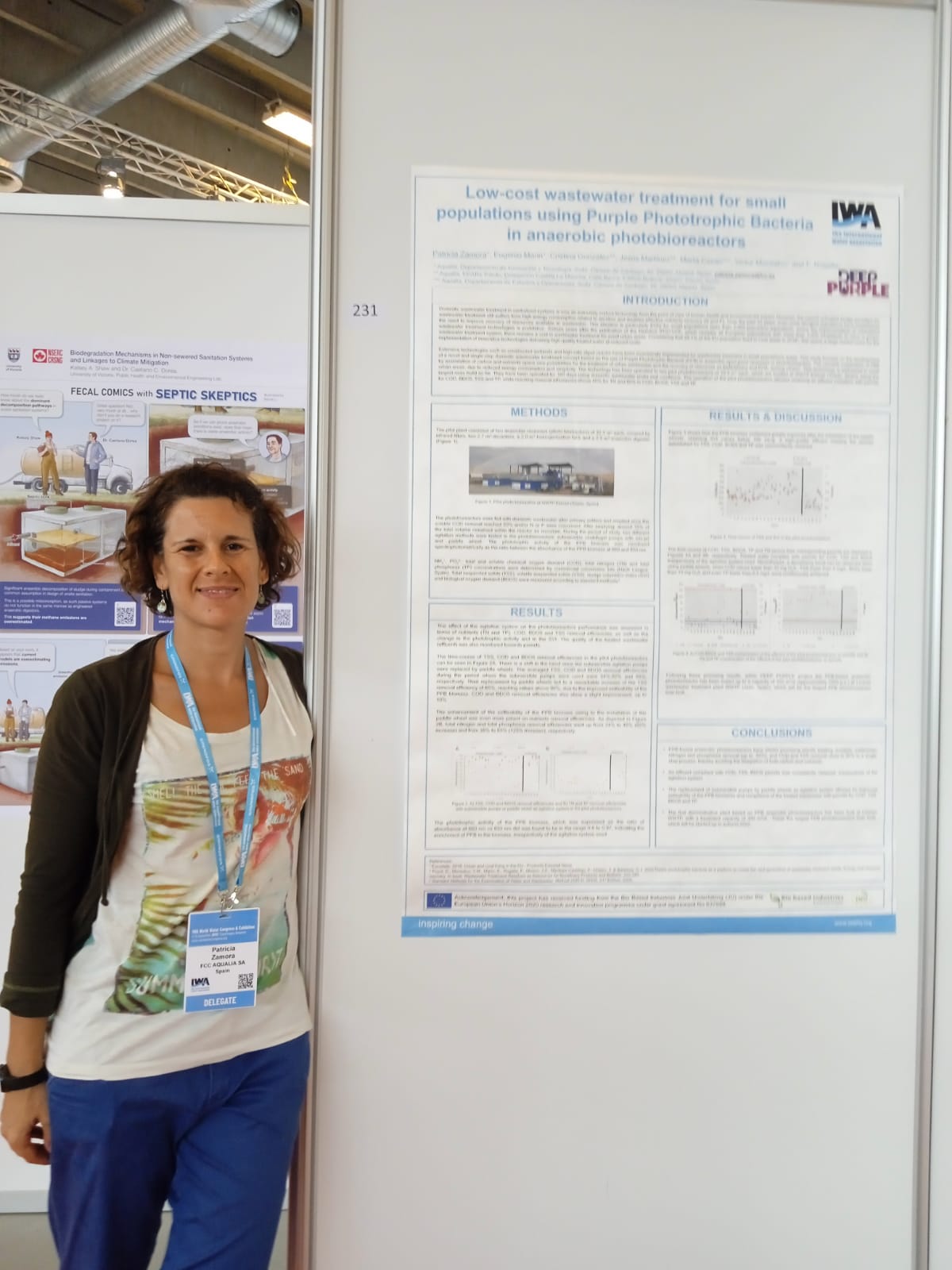 Patricia Zamora, Aqualia, participated in the congress with the poster about PPB biomass production and wastewater treatment in anaerobic raceways titled “Low-cost wastewater treatment for small populations using Purple Phototrophic Bacteria in anaerobic photobioreactors.” She also presented Deep Purple’s results in the workshop “High-value products based on carbon in wastewater – how do we select and is it sustainable?” within the congress program. This workshop aimed to give an overview of high-value products based on carbon in the wastewater, essential points to consider, and a model for prioritizing, including sustainability and requirements from the end users and authorities.