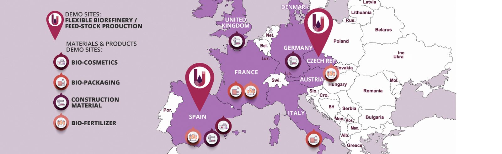 To demonstrate the innovative DEEP PURPLE concept, two DEEP PURPLE Multiplatform Biorefineries will be constructed in representative real bio-waste treatment facilities in Spain and the Czech Republic. These processes will be used to recover resources from urban bio-waste to provide a secure and sustainable supply of biomass feedstock to be further transformed into high added-value products for different industrial sectors.